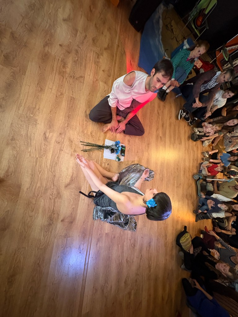 Invocamos un sankalpa –una intención profunda– entre cantos mongoles, espirales ascendentes, momentos dadaístas y memés místicos. Este es un encuentro donde lo ritual, lo absurdo, lo caótico y lo tierno conviven, el goce, la contradicción y la presencia tienen lugar. Porque todo florece, incluso aunque no lo que no entendemos.