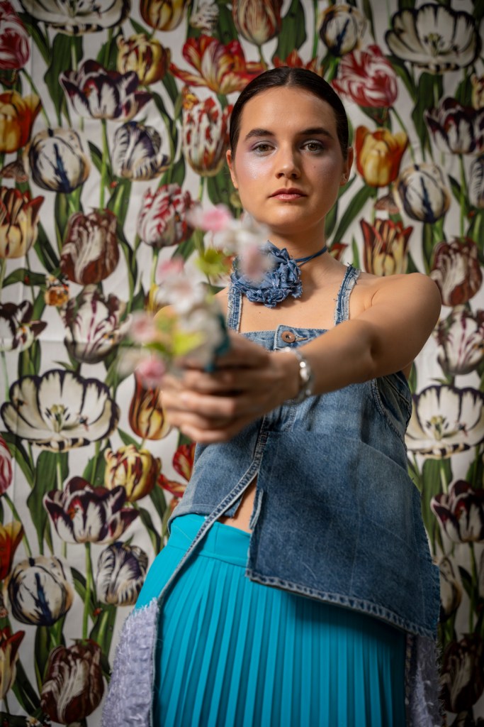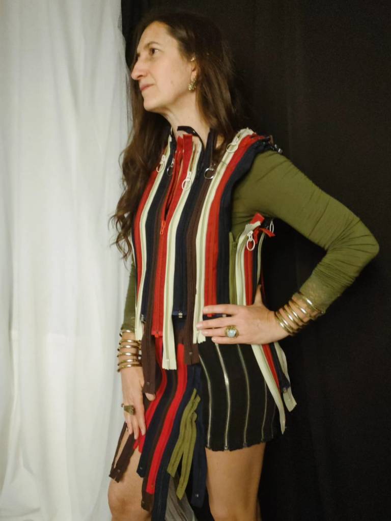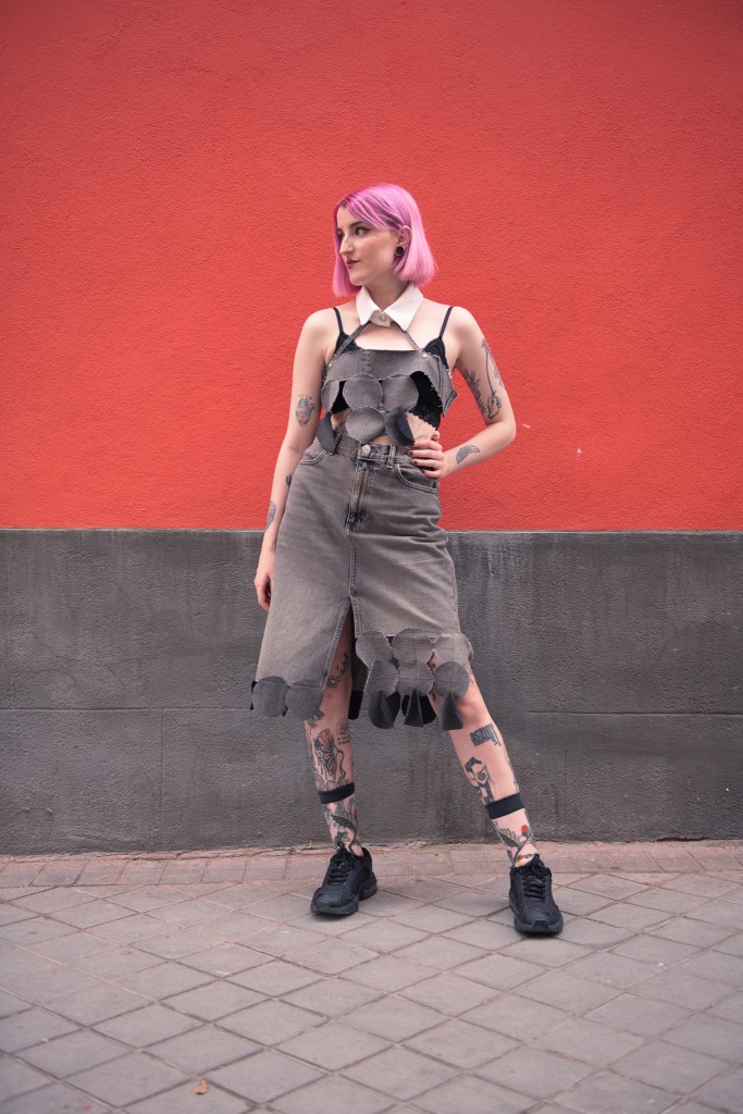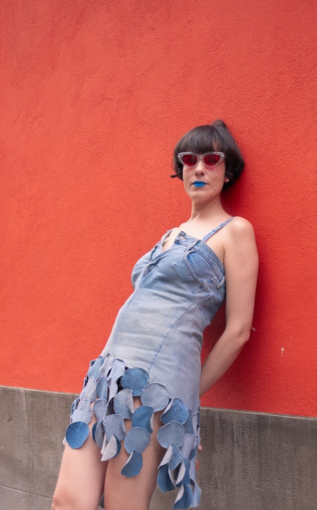 Es una colección – cápsula- hechizo de upcycling, decontrucción vaquera, juego de círculos con terciopelo, tul y lentejuelas. Prototipos disponibles bajo pedido para todas los cuerpas y edades. Por un Remake y Avant Fashion justo, artesanal y personal.